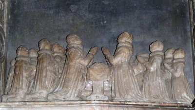 Edward Paston and his family in the Blofield memorialThe research to produce a Blofield Church leaflet and an internal display board was an early task of the Footprints project. The tombs and monuments in the church open up the story of this line of the family, which had become successful and wealthy from the time of the knight John Paston III. He had served the monarchs of his time, son William did the same and the ultimate good fortune came to 'gentleman of the bedchamber' Thomas, who benefited from the largesse of Henry VIII after the King had confiscated many church lands. He sold most for his own wealth, but gave some to particular followers, including Blofield to Thomas.