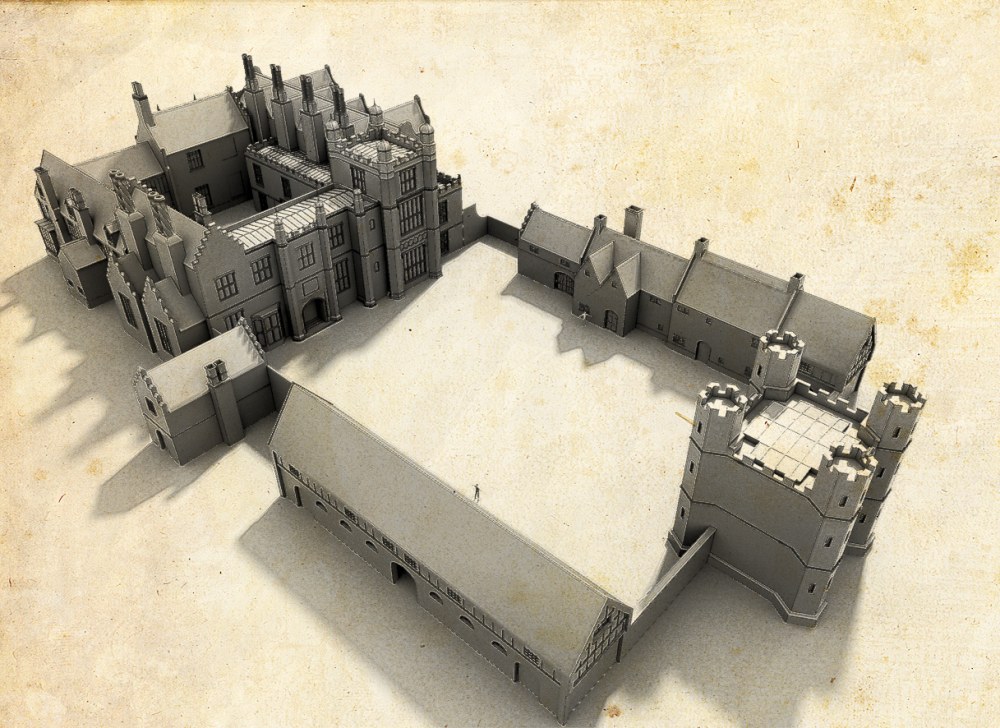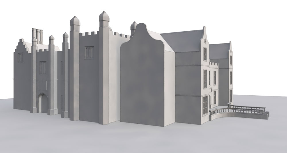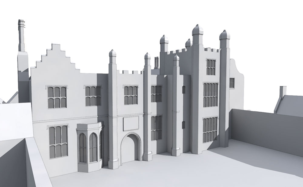 36 feet is my best guess of the height of the hall to the top of the third storey (so not including the roof). I have spent quite some time cajoling the model to fit with the GPR, Boydell and the portrait and feel reasonably happy with 36ft. I can now progress with the knowledge that the scale of the reconstruction is as accurate as I can make it.