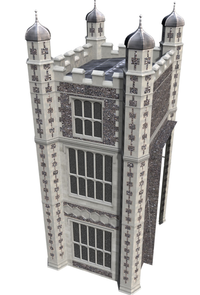 I have been looking at establishing a workflow for texturing the model. I decided to concentrate on the North east corner of the Hall which contains the oldest buildings and that (in my mind) have been re-purposed into a larger service area. I thought it would be useful to show a final specification as far as this corner of the model was concerned and set a texturing standard to aspire to.