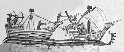 A medieval depiction of fighting at sea - Yarmouth vessels were involved with the English army of Sir John Fastolf and King Henry V.